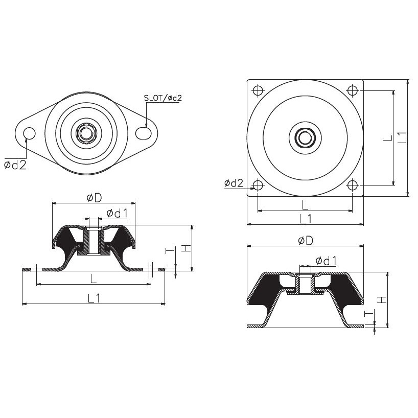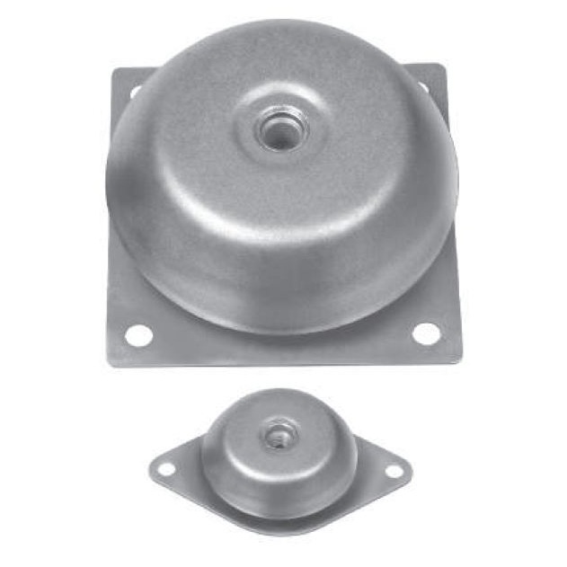 Polybond MACHINE FEET Has integral fail safe design. Rubber profile is used effectively in compression and shear simultaneous. PRA series has comparatively high vertical stiffness. Metal part plated for high corrosion resistance Typical applications are Compressors, AC units, Diesel Engine, Industrial & Marin Geneset, Industrial Fans.
